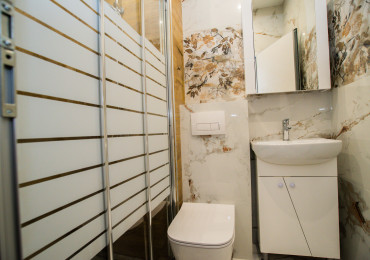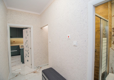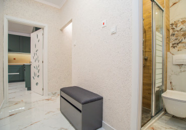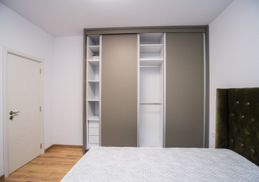 Обзаведена родителска спалня с голям гардероб по индивидуален проект, качествено тапицирано легло, скрин и нощни шкафчета. Втора спалня - детска, необзаведена. Светли помещения сред много зеленина. Вграден гардероб в коридора. Баня с тоалетна с отделена душ зона.