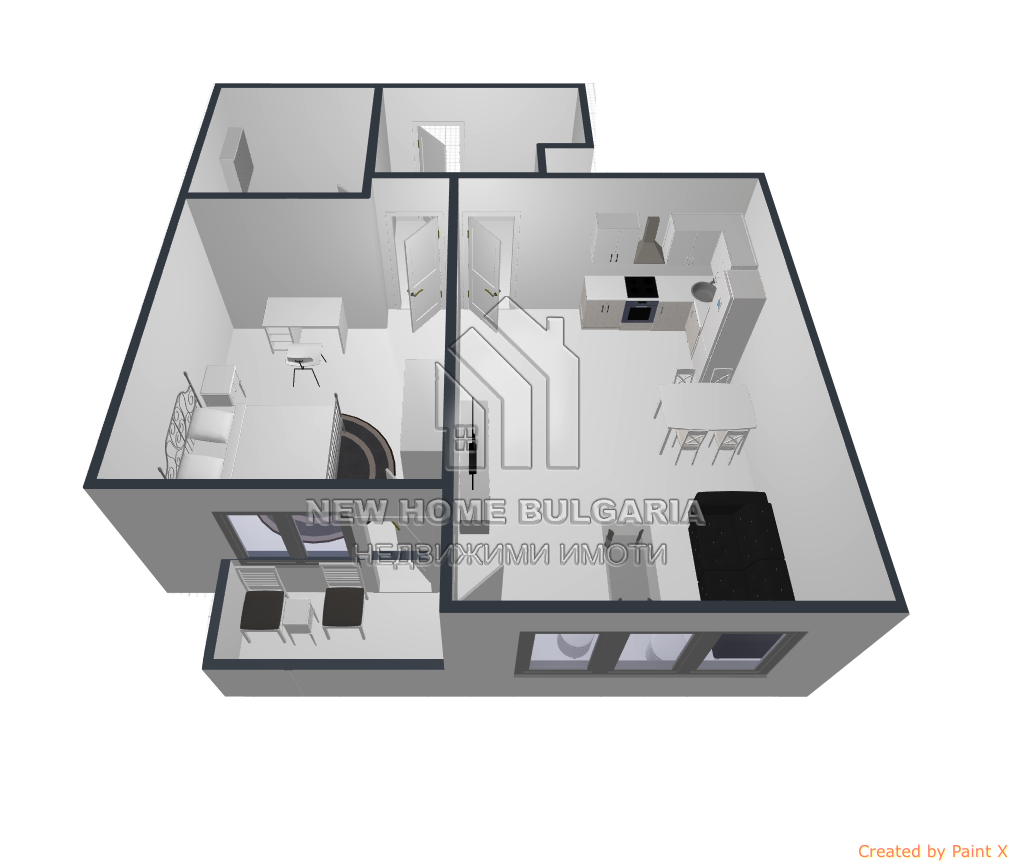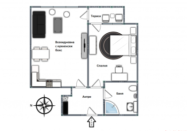 Апартаментът е с източно изложение и се състои от антре, просторна дневна с кухненски бокс, прекрасна светла спалня, баня с тоалетна и чудесна тераса, от която да се наслаждавате на изгревите.