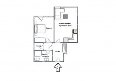 Имотът е с източно изложение. Застроена площ от 56кв.м. Състои се от антре, изключително светла всекидневна с кухненски бокс, спалня, склад и баня с тоалетна. От всекидневната и спалнята има излаз към частния двор на комплекса - 300кв.м. зелени площи.