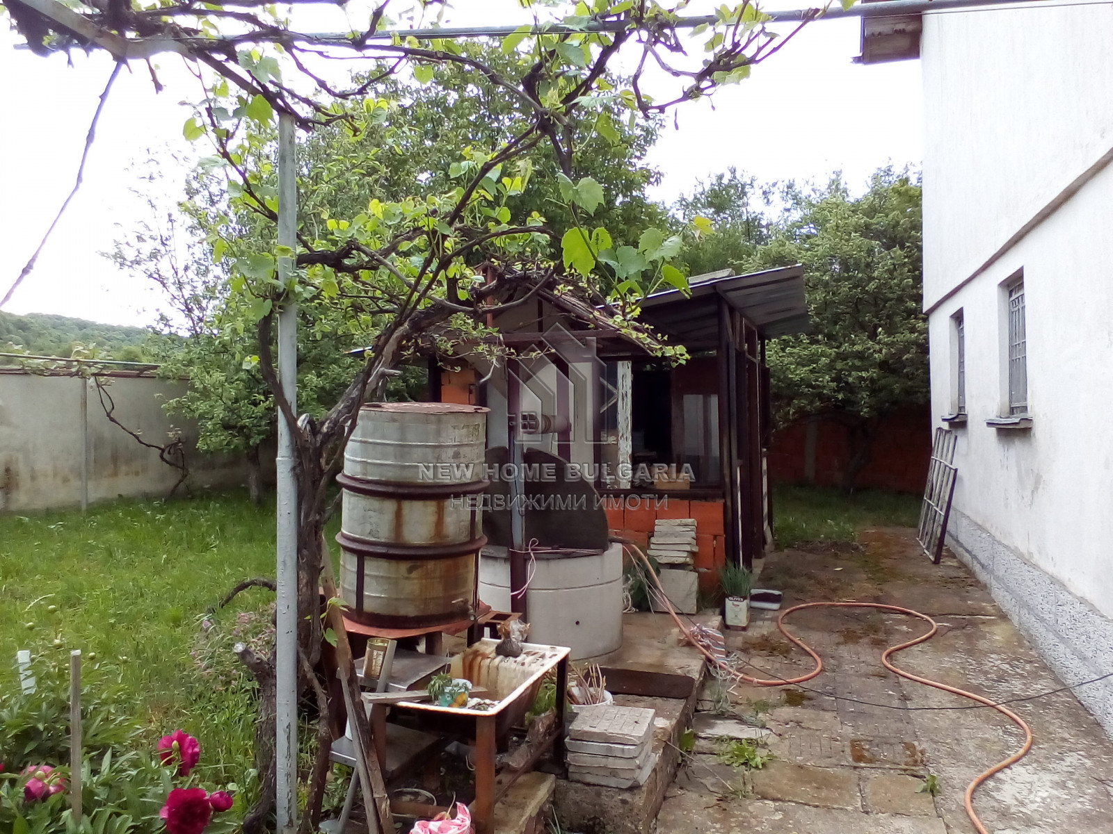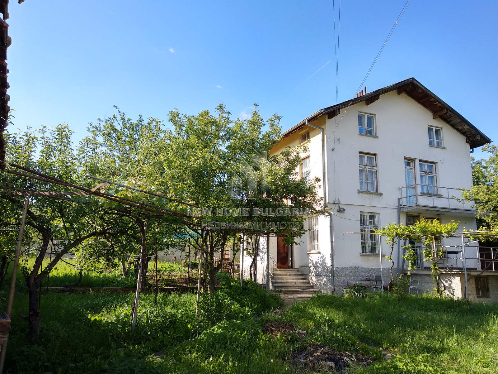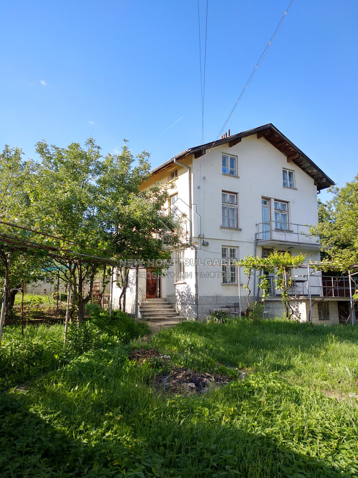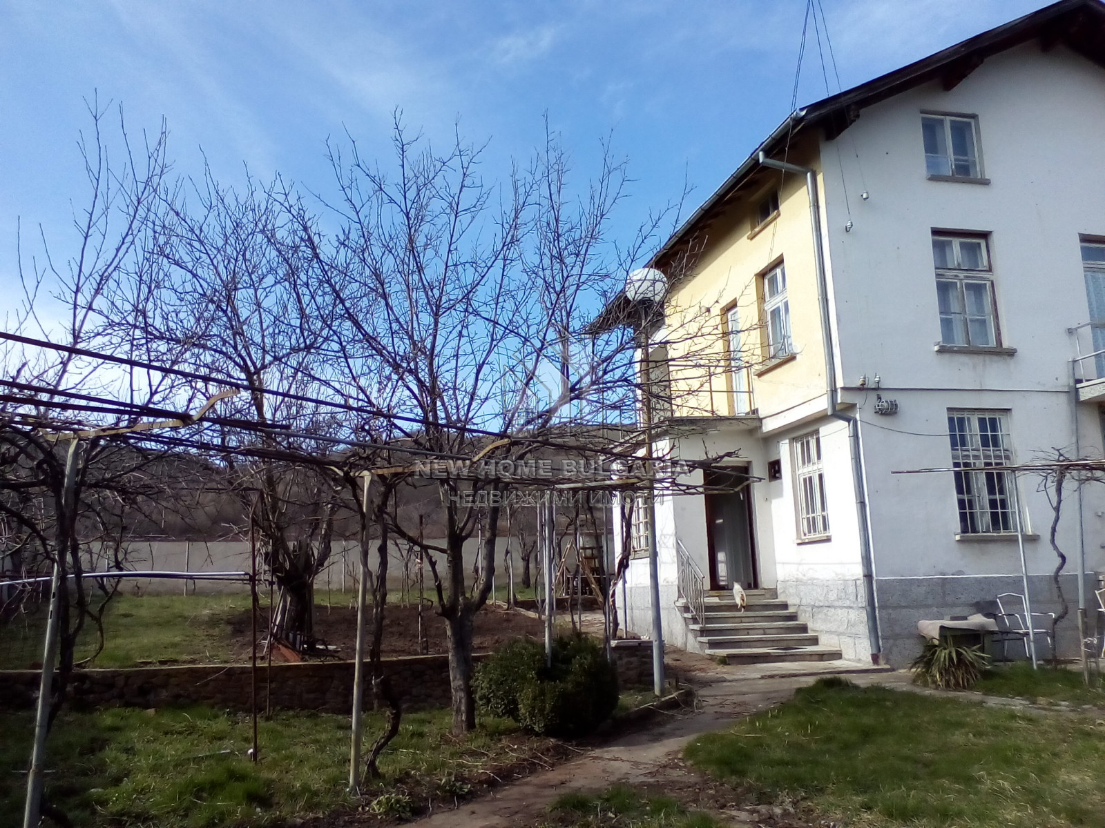 НЮ ХОУМ БЪЛГАРИЯ представя на Вашето внимание самостоятелна двуетажна масивна къща с застроена площ от 100кв.м., построена през 2002 година, с прилежащ равен двор 1000кв.м., заедно с масивен двуетажен гараж с застроена площ от 50кв., заедно с помощни постройки - работилница и склад.