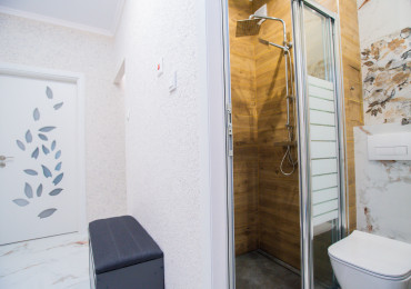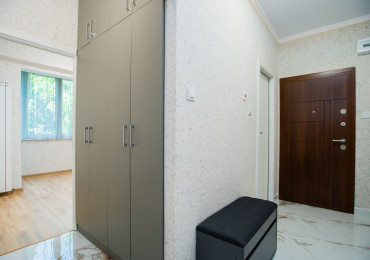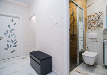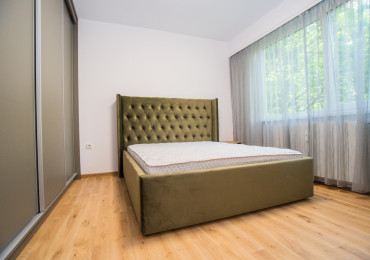 Обзаведена родителска спалня с голям гардероб по индивидуален проект, качествено тапицирано легло, скрин и нощни шкафчета. Втора спалня - детска, необзаведена. Светли помещения сред много зеленина. Вграден гардероб в коридора. Баня с тоалетна с отделена душ зона.