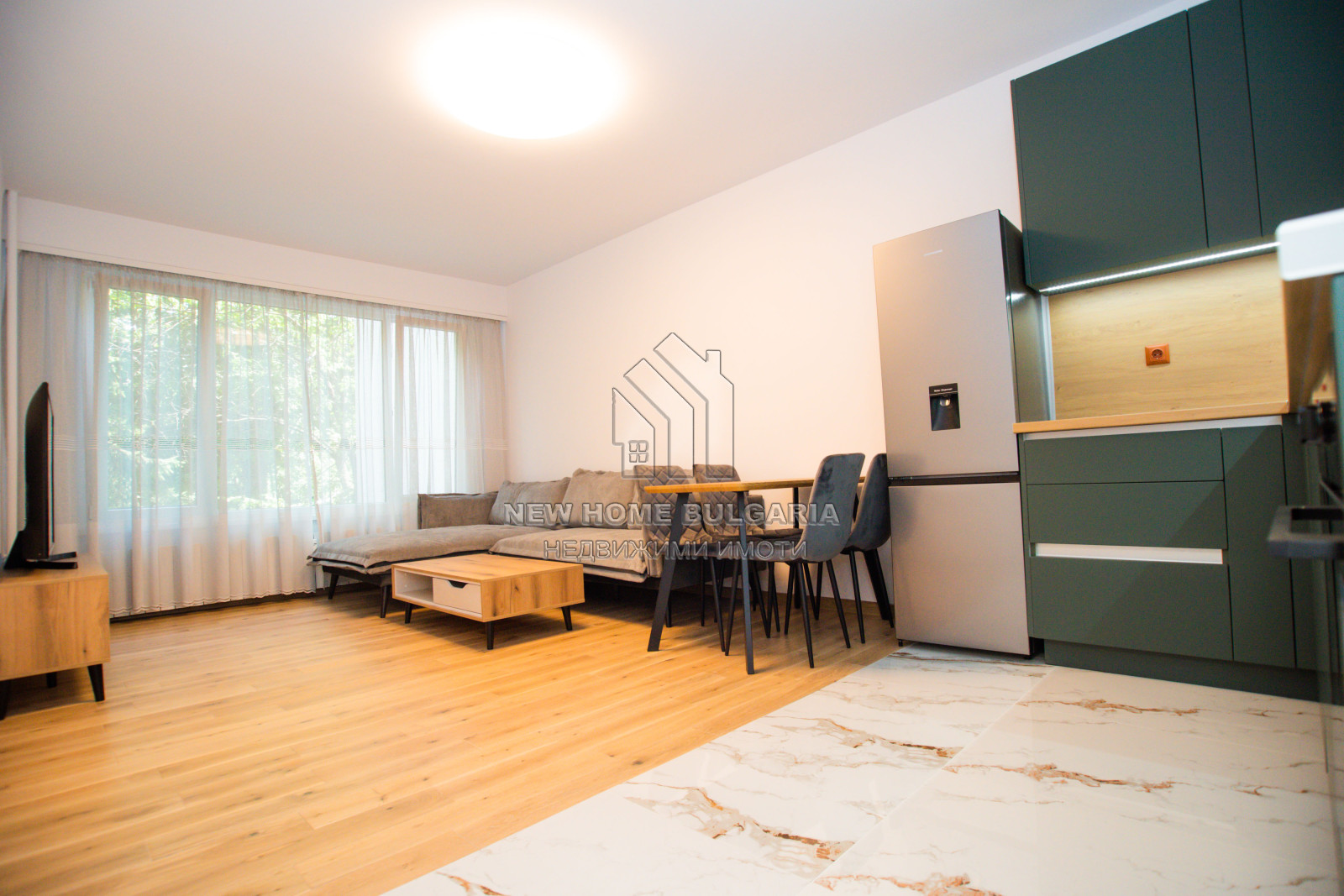 ЧУДЕСЕН, НОВ, ЗАВЪРШЕН АПАРТАМЕНТ! ГОТОВ ЗА НАНАСЯНЕ! ПЕРФЕКТНА ЛОКАЦИЯ! ОТЛИЧНО МЯСТО ЗА ЖИВЕЕНЕ! Жилището се намира в паркова среда сред много зеленина, на спокойно и много комуникативно място, само на две минути от метростанция Г.М. Димитров. В близост - градинки, детски площадки, магазини, аптеки, заведения, ДГ 34 „Брезичка", 49 ОДЗ „Радост“, 105 СУ „Атанас Далчев“, 11 ОУ „Св. Пимен Зографски“, Национален спортен комплекс „Диана“, Ловен парк и много други. Добре поддържани, новоремонтирани общи части. Всичко в имота е чисто ново, неупотребявано. Мебели по индивидуален проект. Масивно, лепено дъбово дюшеме и в трите стаи. Висок клас, първокачествен широкоформатен гранитогрес в коридорите, кухнята и банята. Висококачествена PVC дограма с троен стъколопакет, нискоенергийно /4 сезона/ селективно стъкло. Отлична топлоизолация и шумоизолация. Изключително ниски режийни разходи. Имота е завършен с висок клас материали и довършителни дейности, блиндирана входна врата, входно антре и коридор на гранитогрес и декоративна копринена мазилка, всекидневна с кухненски бокс и трапезария на масивно дъбово дюшеме и гранитогрес, стени и тавани - висококачествен миещ се латекс. Кухня по поръчка, с вградени качествени нови елекроуреди- миялна, фурна и стъклокерамичен плот, абсорбатор; отделно хладилник, смарт телевизор, пералня и сушилня.